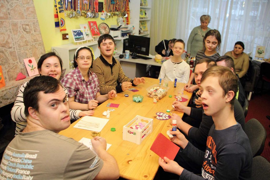 sau activitățile de tip lucrativ sunt un mijloc de exprimare, permițând copiilor/tinerilor cu sindrom Down să creeze în realitate ceea ce a văzut, trăit sau imaginat. Activitățile ergoterapeutice implică gândire, planificare, presupunere și alegere, pentru ca la finalul activității, persoana cu sindrom Down sa fie mândră că a creat o jucărie, un panou decorativ, sau un obiect util. Acest lucru le dă un sentiment revigorant și le conferă un simț al realizării și încrederii în sine, contribuind la structurarea statutului și rolului persoanei, recunoscute din punct de vedere social.